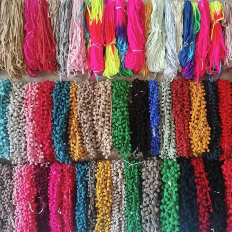 Multi Colours Ball Lace Dekoracyjny design frędzli pom POM Wykończenie wykonane z wysokiej jakości bawełnianej nici/poliestrowego materiału, z POM i Tassel, ma bogate i żywe kolory. Jest odpowiedni do odzieży dla dzieci, artykułów gospodarstwa domowego, rękodzieła i dekoracji festiwalowych. Ma miękki dotyk, jest odporny na zużycie i nie upuszcza piłek.