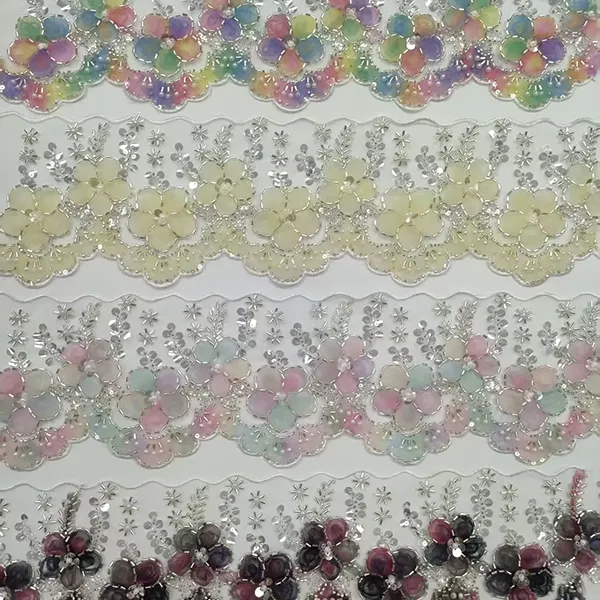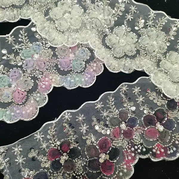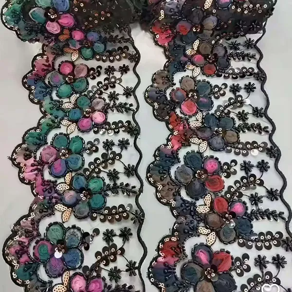 | Towar | Wielokolorowa haftowana koronka z siateczką 3D w kwiaty, wstążka z koralikami, haftowana koronka z kodem kreskowym | ||