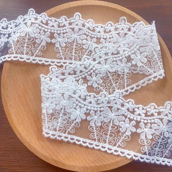 3 cm biały mleczny jedwab, rozpuszczalna w wodzie poliestrowa haftowana koronka